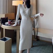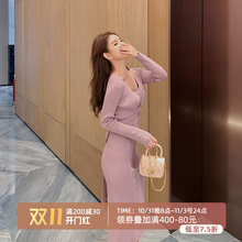 交叉V领修身显瘦针织连衣裙女春秋新款温柔风包臀显身材性感裙子¥59.9