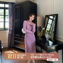 法式桔梗裙子女春秋季修身开叉过膝长款毛衣包臀打底针织连衣裙仙¥35.8