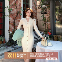 岛歌夫人法式小香风修身包臀裙子白色针织连衣裙女秋冬气质高级感¥189