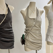 许大晴 性感挂脖内搭连衣裙女纯欲褶皱设计感修身包臀吊带裙子¥169