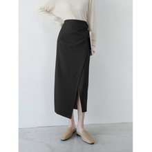 法式褶皱包臀半身裙女高腰秋冬新款设计感修身不规则开叉中长裙子¥95