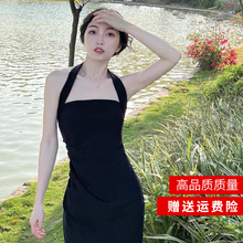 赫本风挂脖连衣裙女新款法式修身显瘦气质小众设计吊带包臀裙子¥126.1