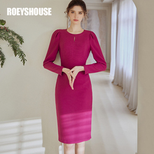 罗衣知性纯色肌理感连衣裙女2022秋装新款气质修身包臀裙子07177¥438