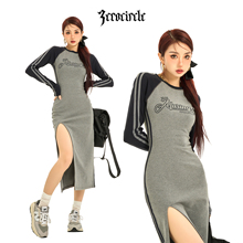 野生zerocircle灰色长袖连衣裙女秋冬季显瘦修身收腰包臀开叉裙子¥179