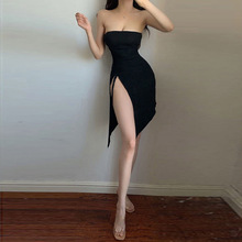 Eva君君酱辣妹吊带连衣裙女包臀链条露背收腰修身开叉中长款裙子¥118