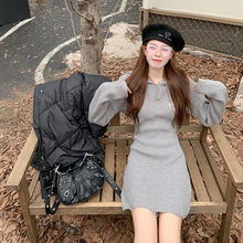 午后商店◆短款方领长袖针织连衣裙女秋季法式复古包臀裙修身裙子¥179