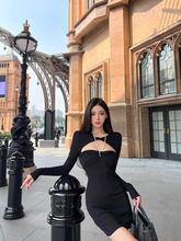曾小咸女装黑色长袖开叉连衣裙女秋季新款修身高级气质包臀短裙子¥129.9