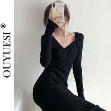 春秋欧美式修身针织连衣裙女法式辣妹御姐毛衣紧身包臀鱼尾长裙子¥89