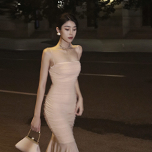 Mimo dk温柔纯欲网纱拼接抹胸裙设计感连衣裙修身显瘦包臀裙子女¥68