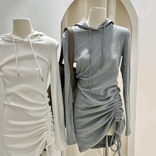 连帽T恤连衣裙女抽绳褶皱包臀修身辣妹短裙 休闲长袖打底裙子秋季¥109.8