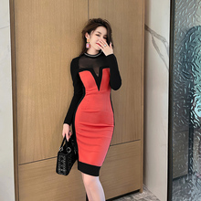 2022秋冬新款女长袖连衣裙中长款气质修身显瘦包臀裙时尚收腰裙子¥96.98