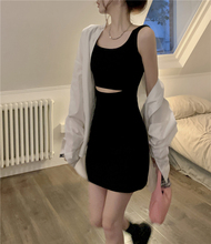 黑色针织吊带连衣裙女镂空修身显瘦辣妹裙子夏季小众设计包臀短裙¥39.98