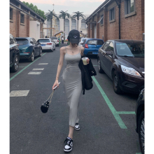 灰色吊带连衣裙女白黑色方领背心紧身性感内搭针织修身包臀短裙子¥35