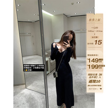 小宜定制【满分氛围】露肩优雅v领针织连衣裙女秋季气质黑色裙子¥214.99