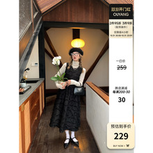 区区欧阳黑色提花无袖连衣裙女秋季新款收腰显瘦长裙宽松复古裙子¥259