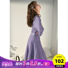 CHACHASTU 法式高级感紫色长袖连衣裙女秋冬小个子黑色丝绒裙子¥199