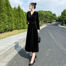 秋装新款2022年法式复古高级感气质长裙子黑色金丝绒长袖连衣裙女¥188