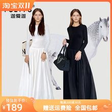红人馆长袖连衣裙女秋季2022新款秋装气质黑色裙子设计感女装长裙¥159.9