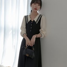 黑泽玄七2022秋季新款高腰显瘦娃娃领黑色拼接鱼尾下摆连衣裙女¥199