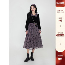 一颗甜桃yikett《在逃少女》假两件丝绒长袖连衣裙女黑色法式秋季¥198