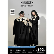 原水2022秋装海军复古风连衣裙女秋季长袖黑色法式赫本风裙子¥179