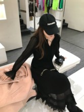罗女士__重工4.8米压褶耗料 全定位工艺香草裙冬季氛围黑色连衣裙¥368