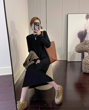 阔色法式黑色针织连衣裙女2022新款秋冬内搭打底厚毛衣长裙子¥214.2