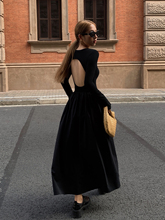 NEVA HU黑色露背长袖针织连衣裙女设计感小众2022秋冬款法式长裙¥158