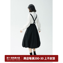 小葱良裁 可拆卸黑色背带裙秋冬中长款高腰宽松花苞无袖连衣裙¥179