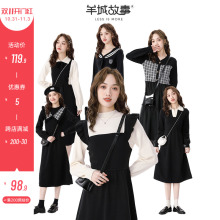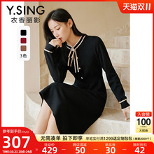 Q女家 温莎学院/刺绣假两件衬衫撞色显瘦连衣裙秋冬黑色2022新款¥279