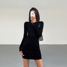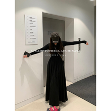 任小艺早秋新款气质赫本风长袖黑色连衣裙女设计感长款显瘦打底裙¥269