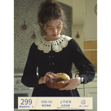 小宜定制【海德公园】法式复古温柔风黑色丝绒连衣裙蕾丝边女裙子¥299.99