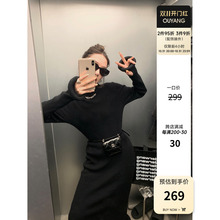 ousph 黑色长袖针织连衣裙女2022秋季新款修身内搭打底包臀短裙¥128