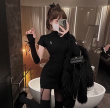 NEVA HU黑色中高领修身针织连衣裙女2022秋季新款显瘦内搭包臀裙¥148