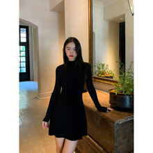 pusumede 黑色半高领针织连衣裙女秋打底修身包臀短裙小个子a字裙¥149