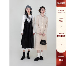 eighthmonth八月 罩衫黑色连衣裙两件套女秋款休闲收腰吊带长裙¥139