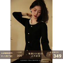 鹭青一【遗珠】黑色连衣裙女秋冬新款重工法式小黑裙复古针织长裙¥399