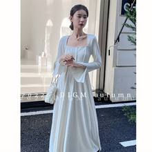 郑在在法式初秋气质方领白色长袖连衣裙女秋季新款高级感裙子长裙¥135