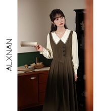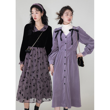 鹿向南 《焦糖栗子》复古拼接假两件长袖连衣裙女秋冬气质长裙子¥178