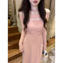 郑在在法式气质长袖粉色连衣裙女收腰早秋新款裙子方领长裙高级感¥168