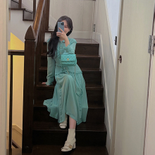DIGM2022秋季新款法式复古气质方领长袖连衣裙女收腰显瘦长裙裙子¥135