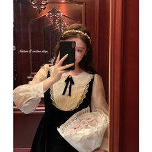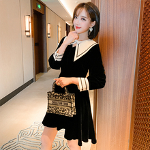 法式赫本风黑色连衣裙女2022新款秋娃娃领气质长袖金丝绒a字裙子¥188