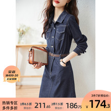 沫晗依美牛仔简约气质配腰带裙子2022秋新款衬衫领长袖休闲连衣裙¥249