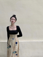 任小艺赫本风法式长袖连衣裙2022新款秋气质女神长款裙皮裙两件套¥319