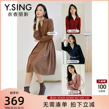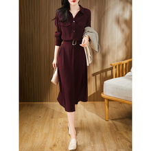 简漫 气质优雅质感酒红色衬衫裙女秋休闲长袖连衣裙 日常通勤年会¥249