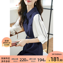 沫晗依美气质撞色条假两件连衣裙2022秋季新款时尚设计感时髦显瘦¥259.9