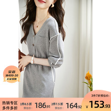 沫晗依美气质休闲中长款灰色裙子2022年秋季新款时尚百搭连衣裙女¥219.9