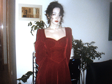 午后商店◆红色方领丝绒连衣裙女秋季法式复古气质别致赫本风裙子¥239