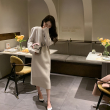 2022秋冬新款长款高级感收腰显瘦气质西装套装吊带连衣裙两件套女¥238
