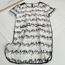 夏季新款真丝直筒白色连衣裙女骏马印花双绉桑蚕丝中长款圆领裙子¥78